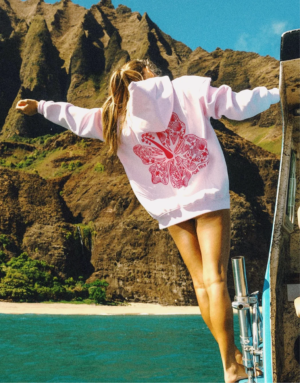 “Hawaii Hibiscus” Hoodie in Sonic Pink